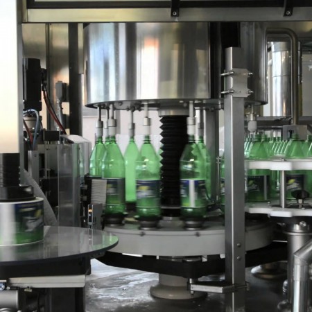 d'une bobine sur des bouteilles cylindriques, vides ou pleins. Le servomoteur de l'unité d'étiquetage contrôle avec précision l'étirement du film, qui est déroulé, coupé et transféré dans le conteneur avec la technologie du vide. Le rouleau de colle en acier inoxydable répartit la colle sur les bords des étiquettes. La conception du rouleau garantit une consommation minimale de colle. Les principaux domaines de production sont: les boissons, l'eau minérale, les aliments, le lait, les produits chimiques. Vitesse de production: de 8 000 à 72 000 bph avec une unité d'étiquetage. Specifications: -Le rouleau de colle est actionné par un servomoteur et solidarisé au support mobile horizontal qui se déplace d'avant en arrière en fonction de la présence de la bouteille qui doit être étiquetée (pas de bouteille pas d'étiquette) -Le réservoir de colle dispose d'un nouveau système de filtrage qui empêche tout résidu d'étiquetage de pénétrer et d'obstruer l'alimentation -Le support double bobine est actionné par des servomoteurs. Il vous permet de traiter une large gamme de matériaux de qualité et d'épaisseur différentes -Système utilisé pour charger les bobines verticalement (HERCULES) -Vis d'alimentation actionnée par le servomoteur -Courroie motorisée pour faire tourner les plaques |