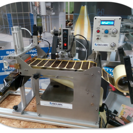 etc. La machine peut appliquer des étiquettes de toutes tailles d’une hauteur maximale de 160 mm. Un système constitué d'une plaque commandée par un cylindre pneumatique prélève l'étiquette et la presse contre la bouteille. La plaque est munie d’ un caoutchouc particulièrement épais qui suit les courbes du container. Ce système permet un étiquetage parfait, sans le moindre pli, y compris des conteneurs ayant une superficie non plate et avec des étiquettes ayant un faible coefficient de dilatation ( étiquettes en plastique – transparentes, etc….). |
