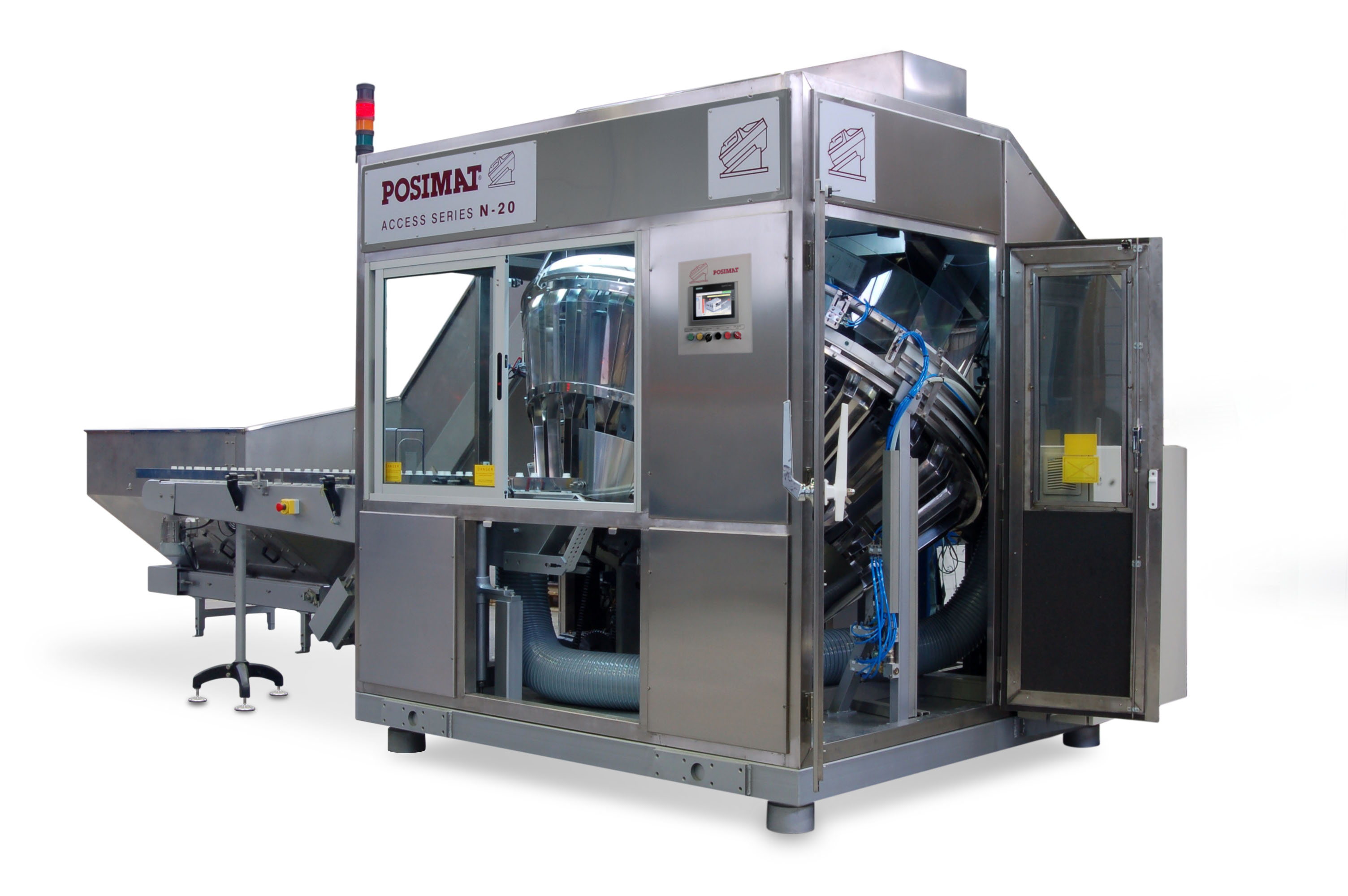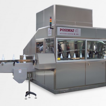 vides sur des convoyeurs. Toutes sortes de bouteilles: légères ou lourdes, cylindriques, ovales ou asymétriques, à cols courts ou même sans col, éléments plats comme des couvercles ou des bouchons, avec ou sans étiquette, etc. Vitesses de 2 000 à 80 000 bouteilles par heure. |