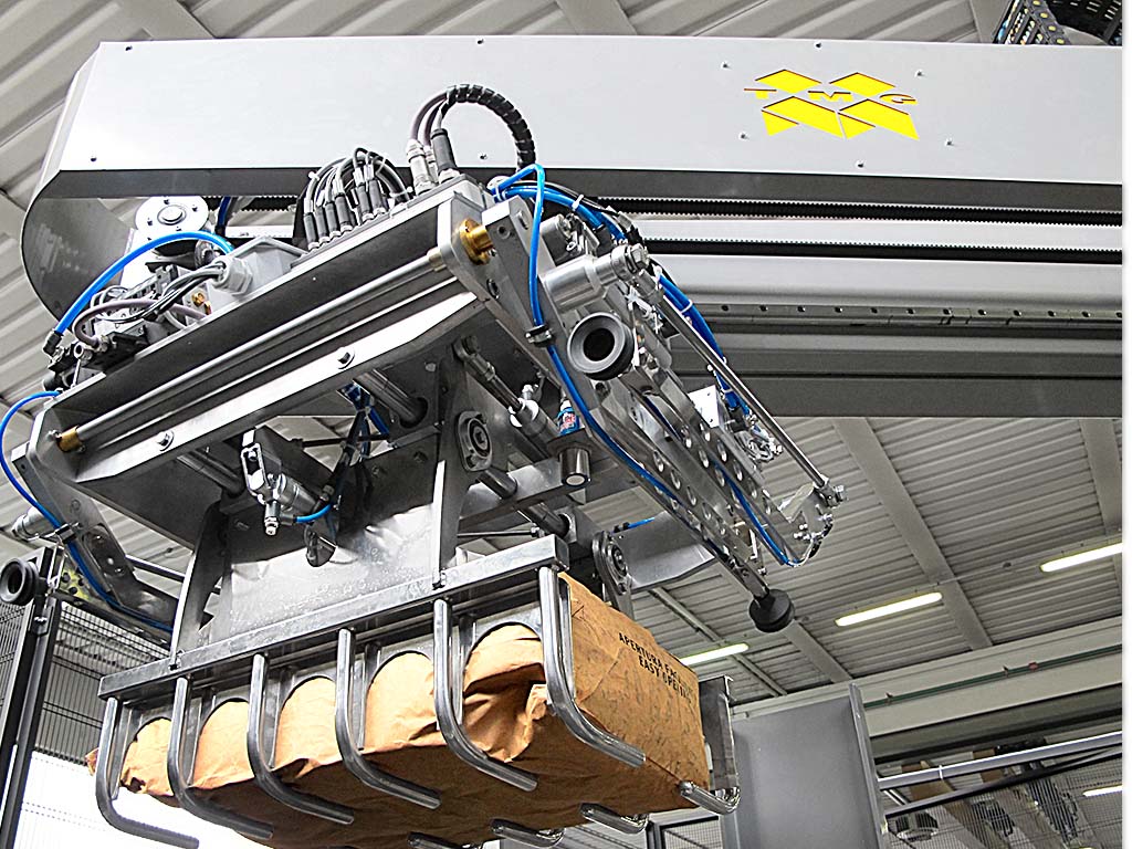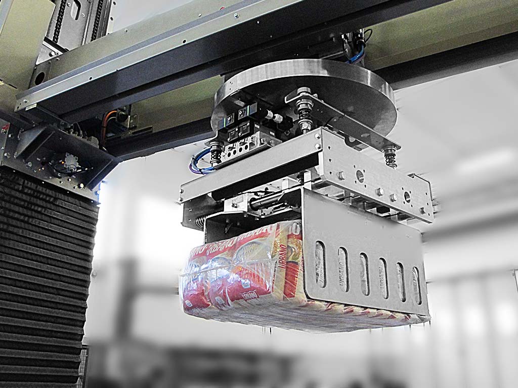 En option, le palettiseur peut être équipé d’une pince pour manipulation