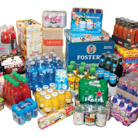 récipients en plastique, métal, carton ou verre sous découpes entourantes en