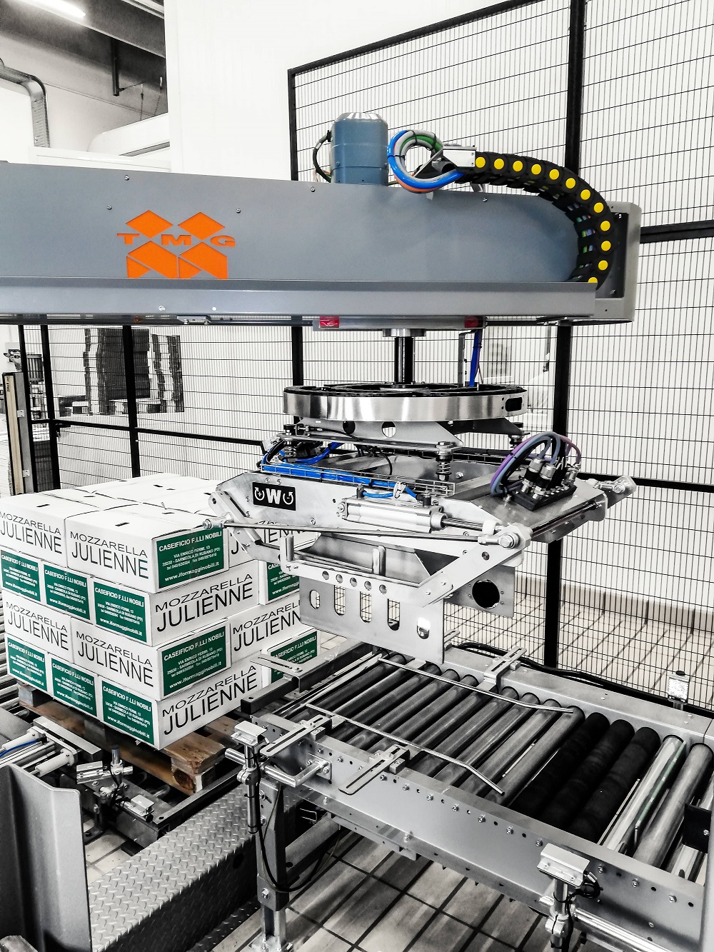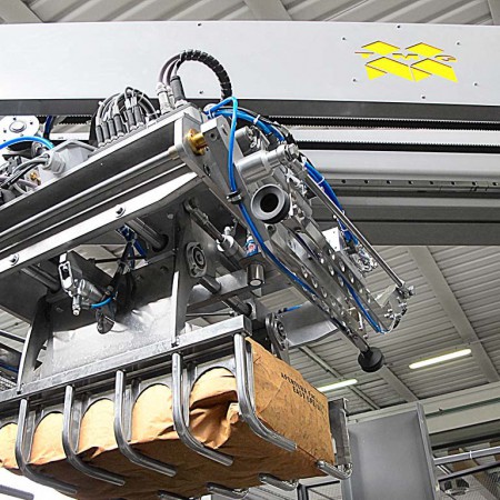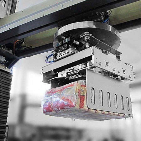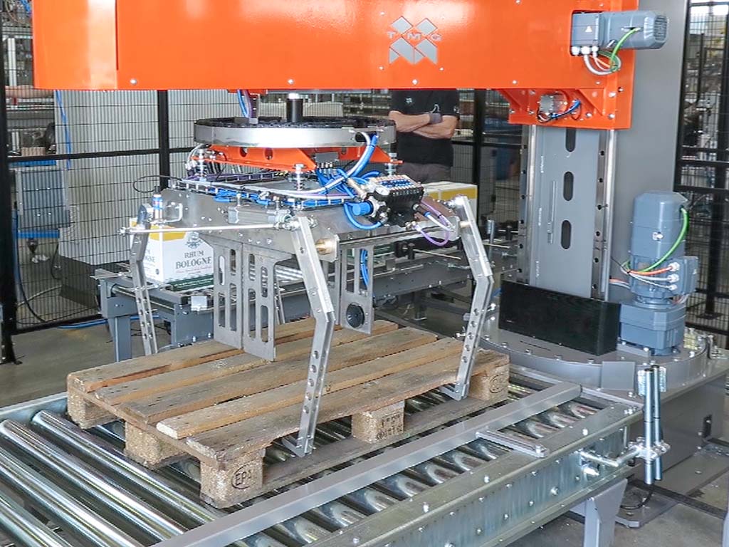 En option, le palettiseur peut être équipé d’une pince pour manipulation