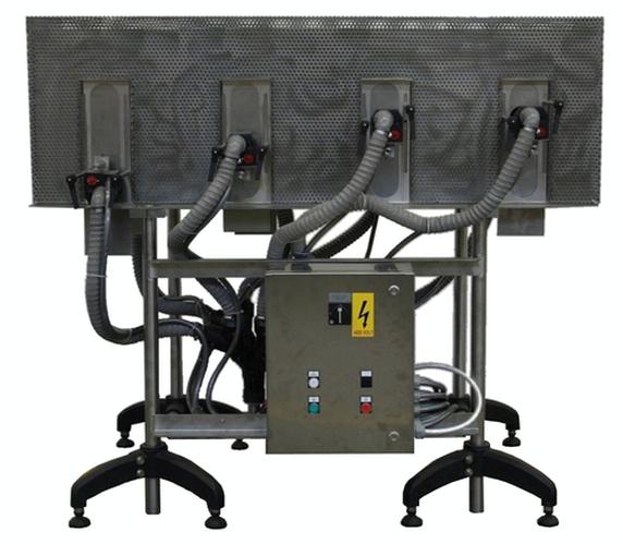 utilisation et un réglage simples. Adapté à la thermorétraction de manchons de différentes formes sur des bouteilles et verre et en plastique. Specifications: - Souffleurs à air chaud ayant une température et un flux variables, - Affichage de la température interne - Réglage des réchauffeurs en hauteur - Panneaux à infrarouges pour le préchauffage du sleeve |